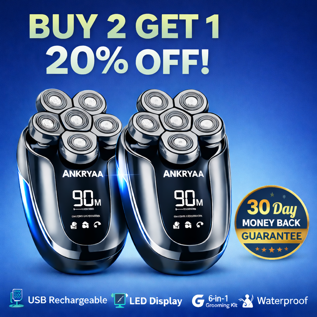 Say goodbye to rough hair, painful cuts, and time-wasting grooming routines. This powerful 6-in-1 electric shaver is designed to give you a smooth, clean finish in minutes. Its flexible rotary blades adapt to your head and body, delivering a close, irritation-free shave whether you use it wet or dry. Simple, fast, and built for men who want a clean look without the stress.